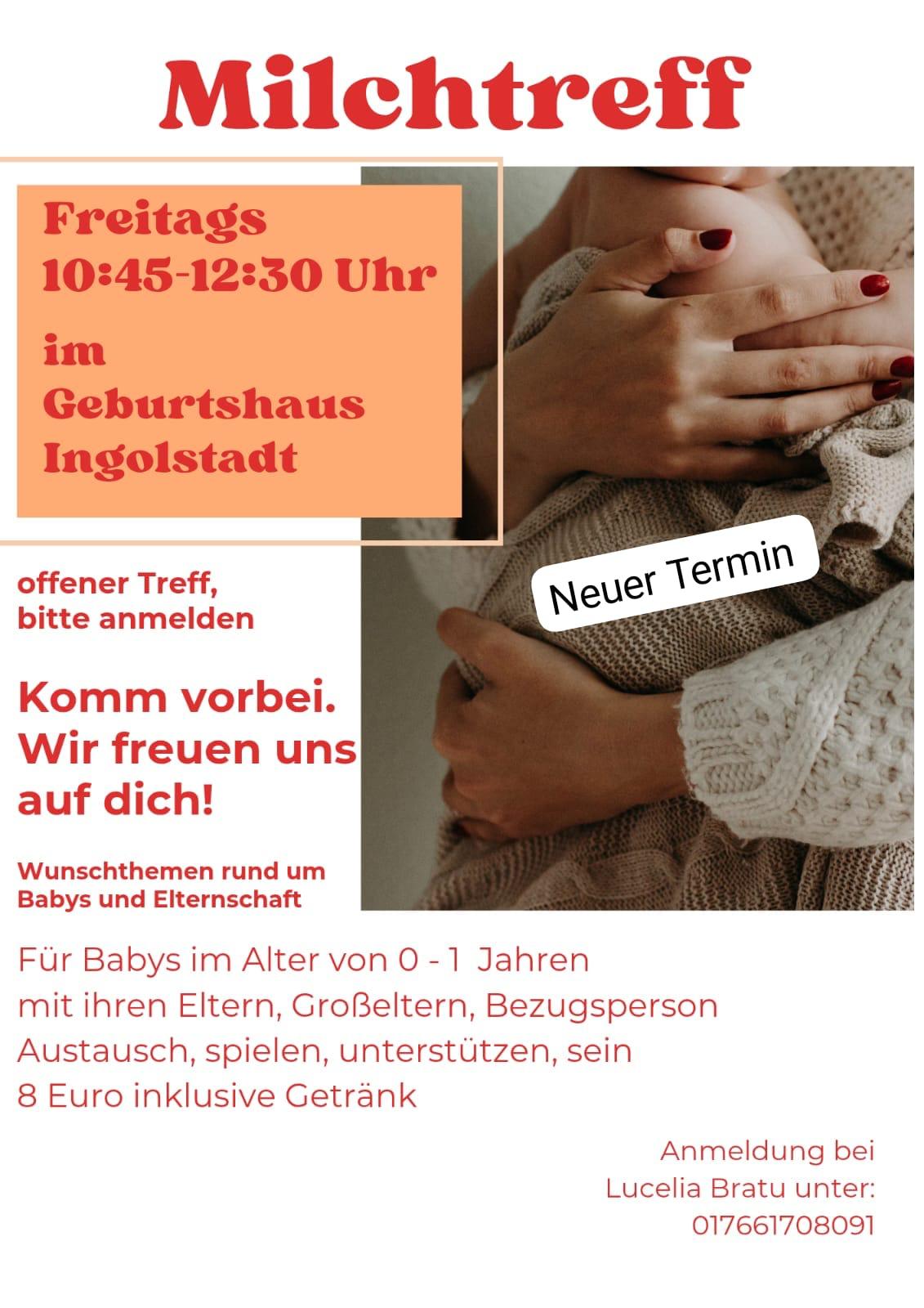 Unser Milchtreff bietet dir einen geschützten Raum für Austausch rund um das Leben mit Baby – egal ob du Fragen zum Stillen, zur Ernährung, zu Schlaf, Bindung oder dem Alltag mit deinem Kind mitbringst. Babys im Alter von 0–1 Jahren sind herzlich willkommen, ebenso alle Bezugspersonen. Der Treff findet regelmäßig im Geburtshaus Ingolstadt statt. Bitte melde dich kurz bei Lucelia an unter 0176 6170 8091